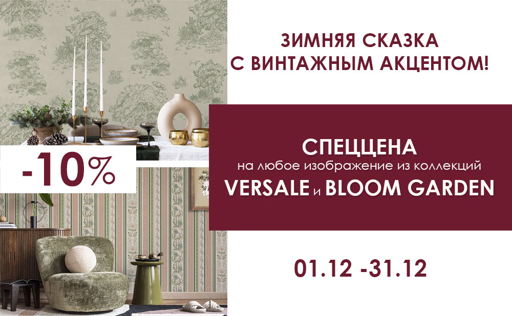 Приглашаем вас окунуться в мир винтажного очарования с помощью наших уникальных дизайнерских коллекций - «Versale» и «Bloom garden» . Весь декабрь любое изображение из этих коллекций можно приобрести по СПЕЦцене – 10%!