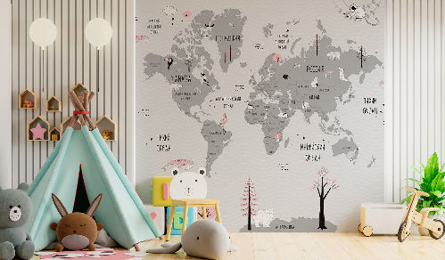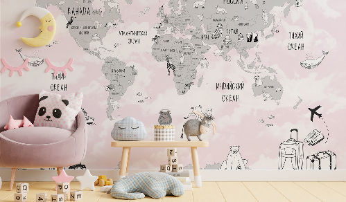 Вы обязательно подружитесь с этими забавными героями. Милые зверюшки живут в своем маленьком городе, в лесу, путешествуют на воздушных шарах и велосипедах, самолетах. Также сюда входят новые детские карты мира. Все дизайны выполнены в нескольких цветовых вариациях, чтобы вы могли подобрать гармоничный вариант для вашего проекта комнаты.
